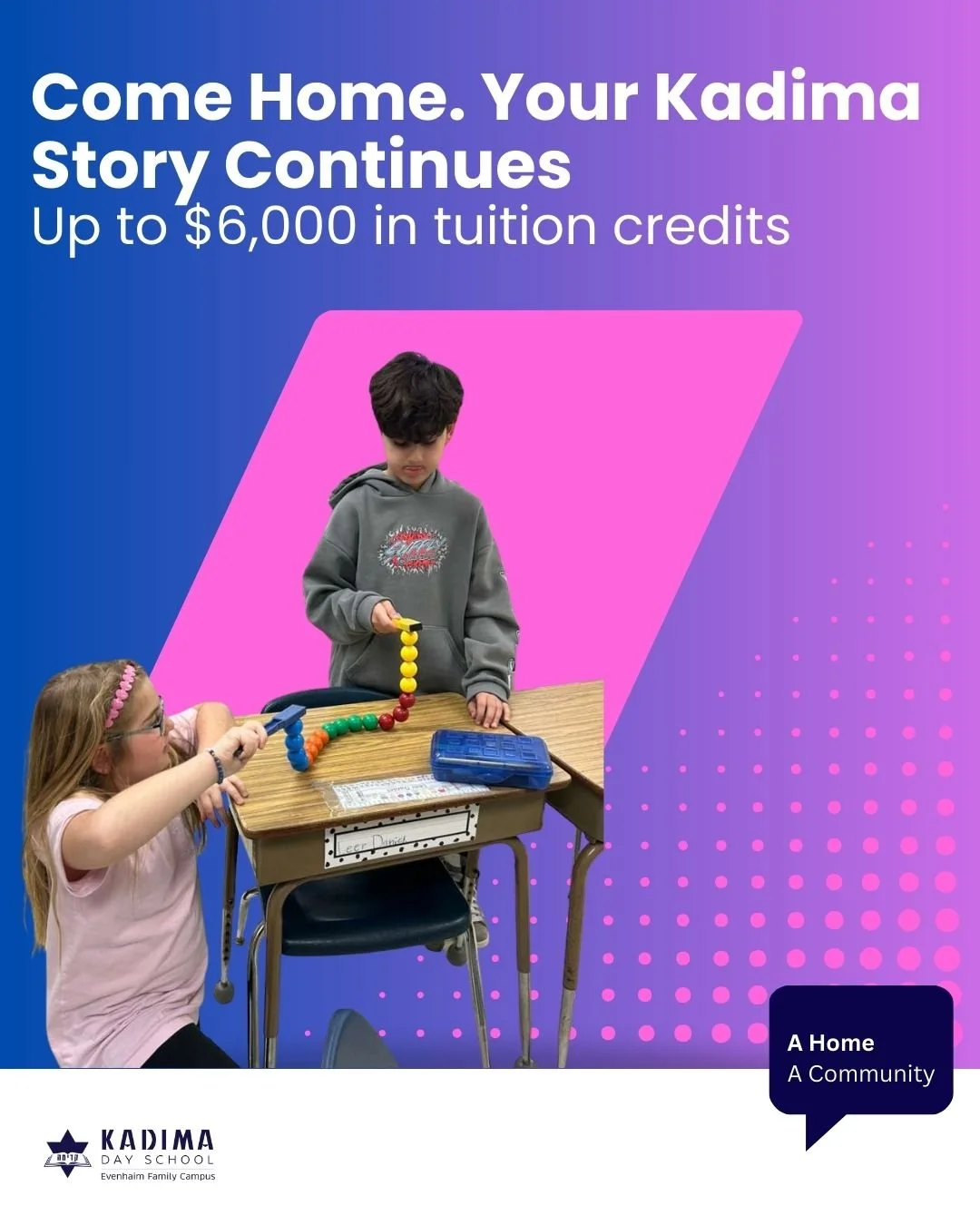 Making an exceptional Jewish day school education accessible and sustainable for both families and schools is an ongoing challenge facing our Jewish community. Kadimaโs decision to reduce tuition is grounded in the knowledge that private school tuitions have reached an all-time high, forcing many families out of the private-education marketplace. While remaining at the forefront of academic excellence, Kadima is taking the lead in increasing accessibility for private Jewish schools with a tuition of 40% below market rate.