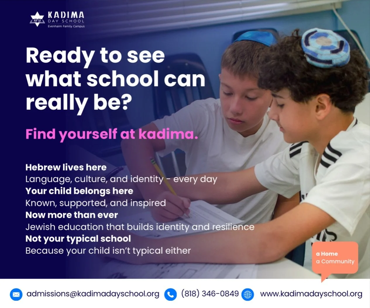 Making an exceptional Jewish day school education accessible and sustainable for both families and schools is an ongoing challenge facing our Jewish community. Kadima’s decision to reduce tuition is grounded in the knowledge that private school tuitions have reached an all-time high, forcing many families out of the private-education marketplace. While remaining at the forefront of academic excellence, Kadima is taking the lead in increasing accessibility for private Jewish schools with a tuition of 40% below market rate.